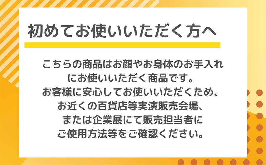 お近くの百貨店等実演販売会場、または企業展にて販売担当者にご使用方法等ご確認ください。